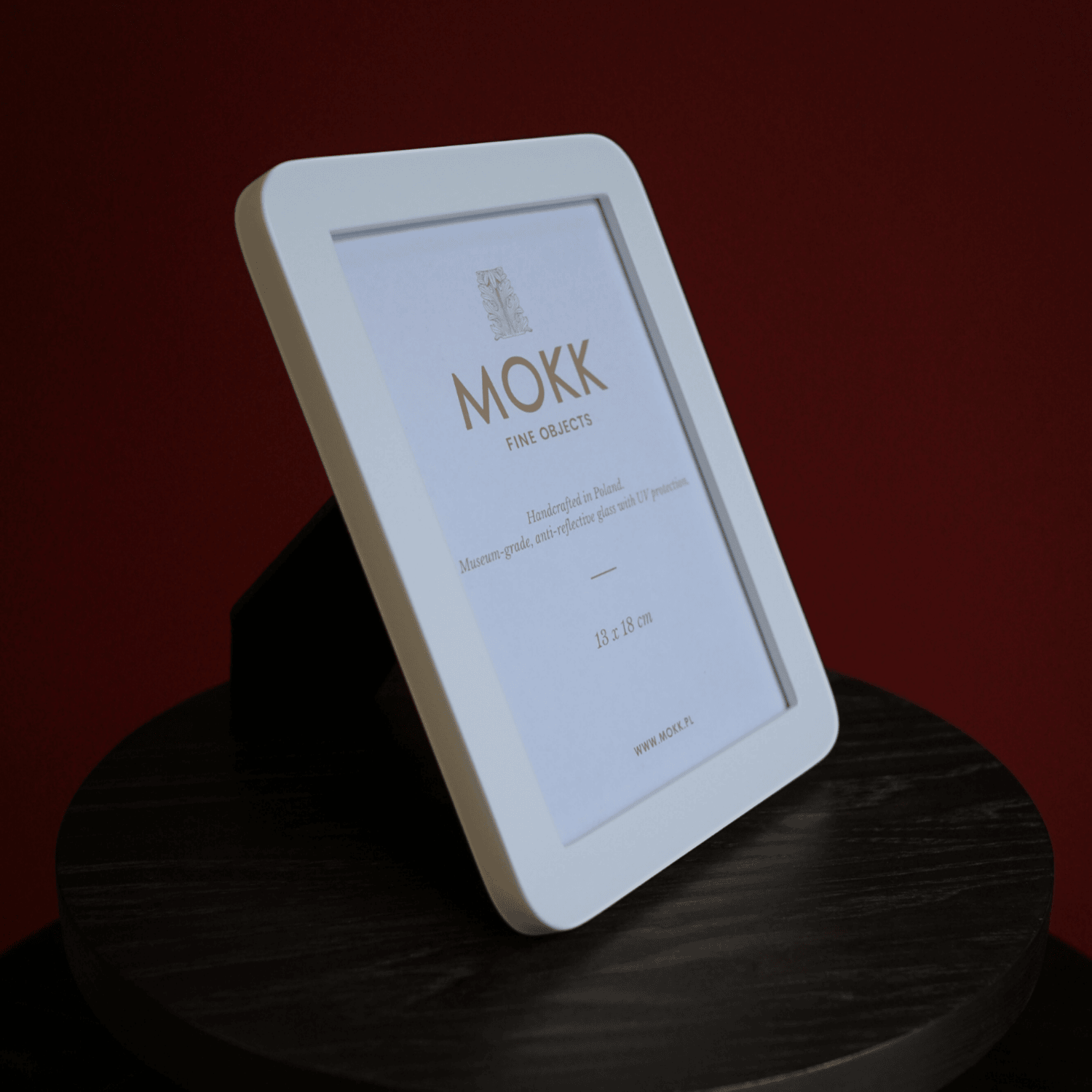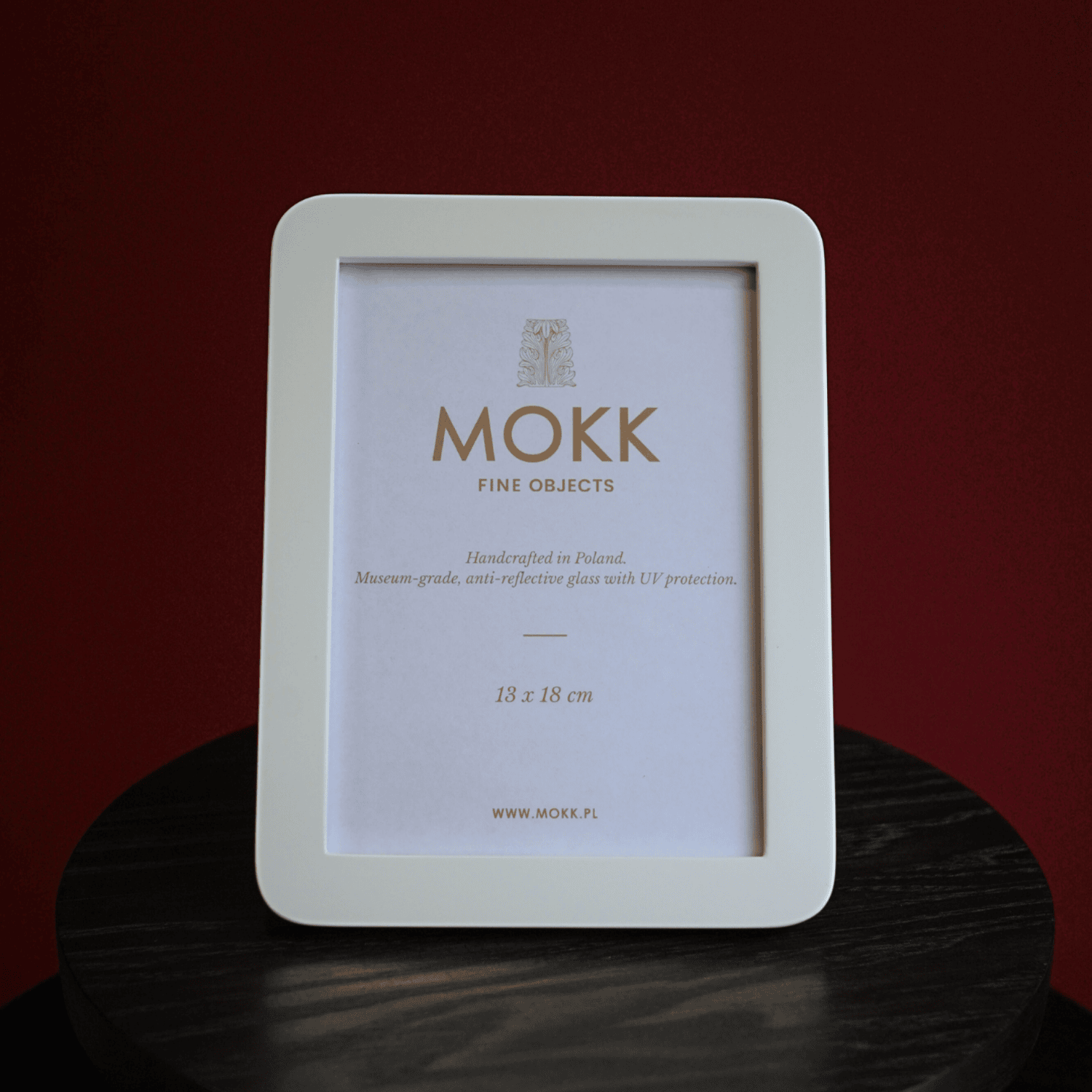 Ręcznie wykonana ramka fotograficzna z zaokrąglonymi narożnikami. Wyposażona w muzealne szkło antyrefleksyjne z filtrem UV, które chroni zdjęcia przed blaknięciem i zapewnia doskonałą widoczność bez odbić. Elegancka forma, szlachetne materiały i estetyczne odwrocie sprawiają, że ramka doskonale nadaje się do ekspozycji fotografii. Do ramki dołączane welurowe etui.