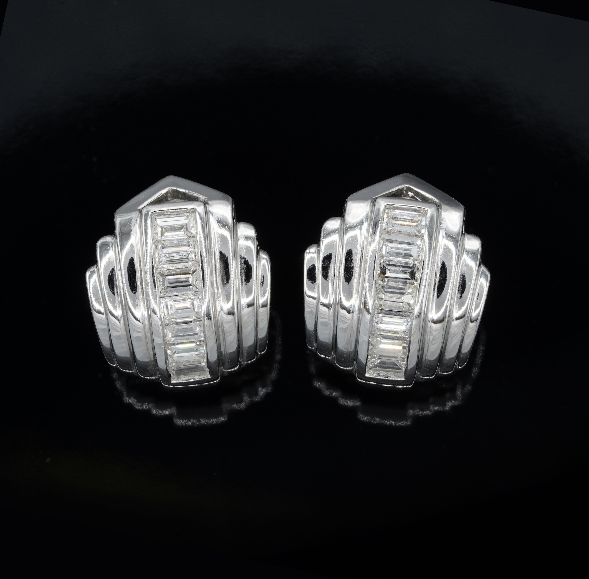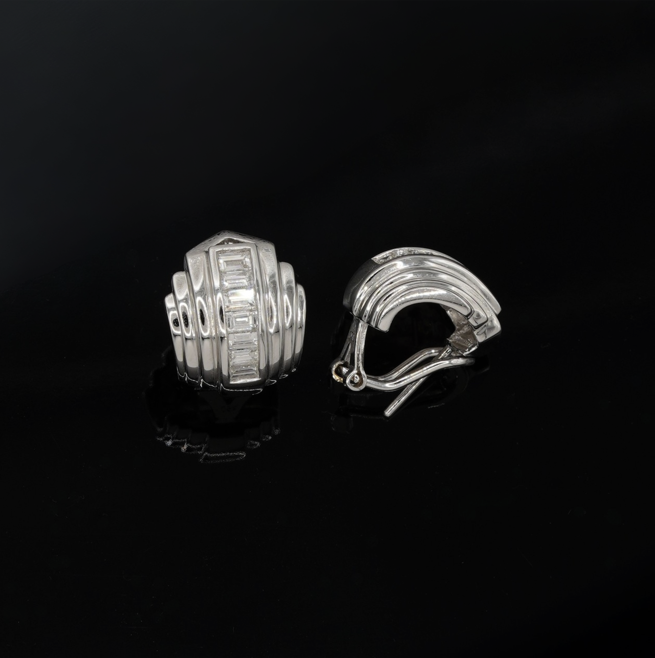 Luksusowe kolczyki z białego złota z diamentami w szlifie bagietowym