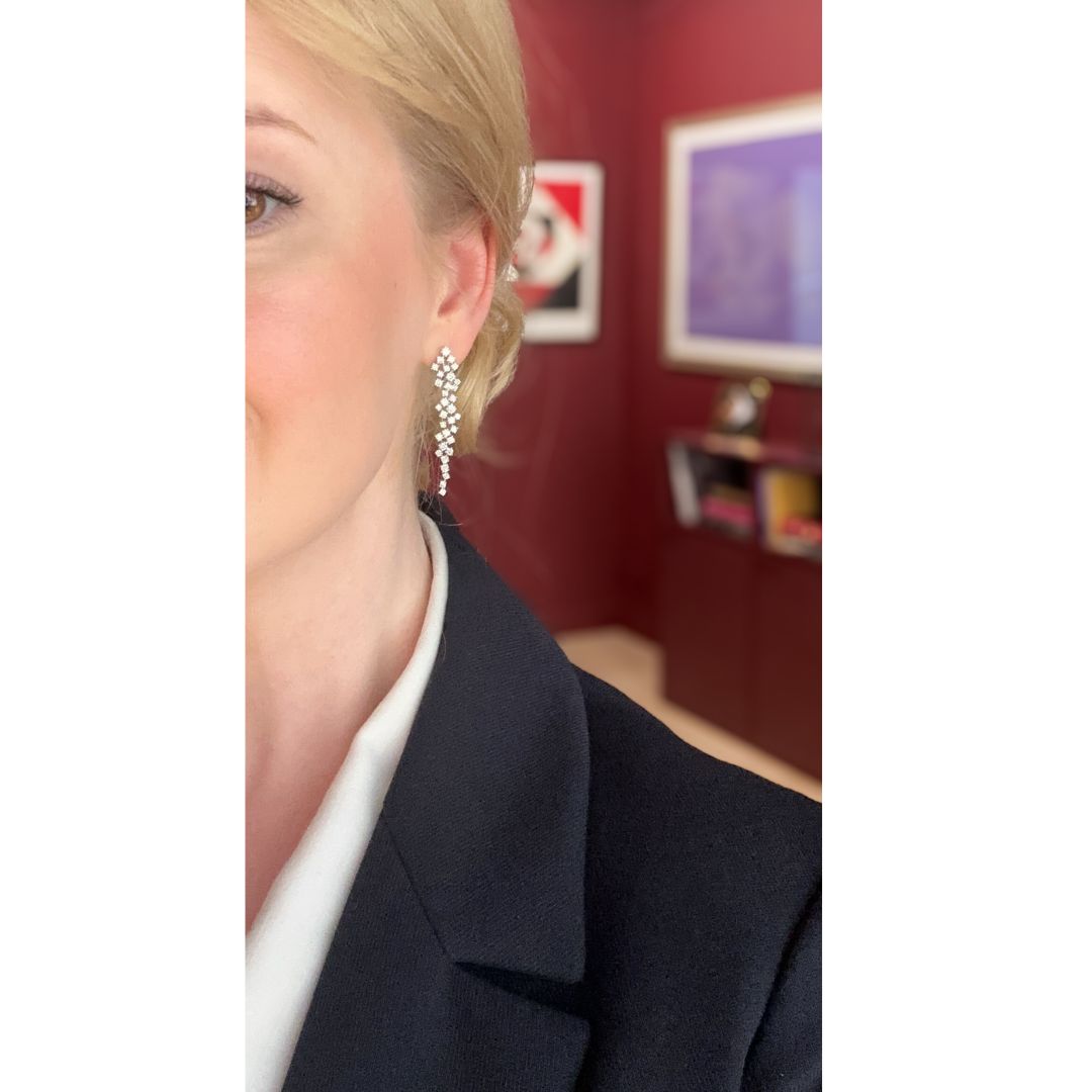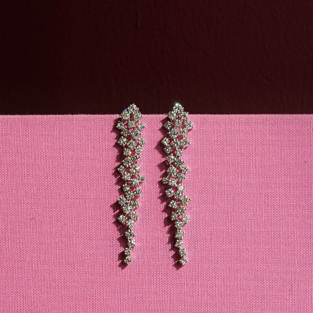 Finezyjna forma i subtelny blask zamknięte w eleganckiej, wydłużonej linii. Kolczyki z 66 brylantami przyciągają światło przy każdym ruchu, tworząc efekt lekkiego, migoczącego kaskadowania. Wykonane ze złota i z precyzyjną oprawą typu kasty, zapewniają trwałość i maksymalne wydobycie blasku kamieni. To biżuteria, która świetnie odnajduje się zarówno w eleganckich, wieczorowych stylizacjach, jak i w bardziej codziennych zestawach – dodaje im wyrazistości i przyciąga spojrzenia.
